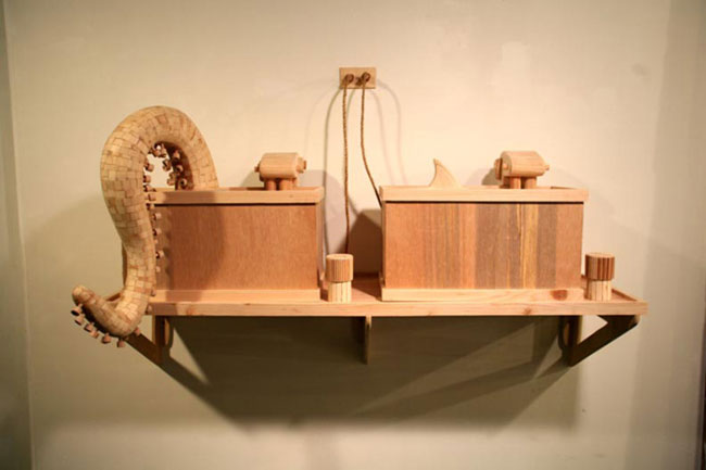 wood, rope, pink-foam
